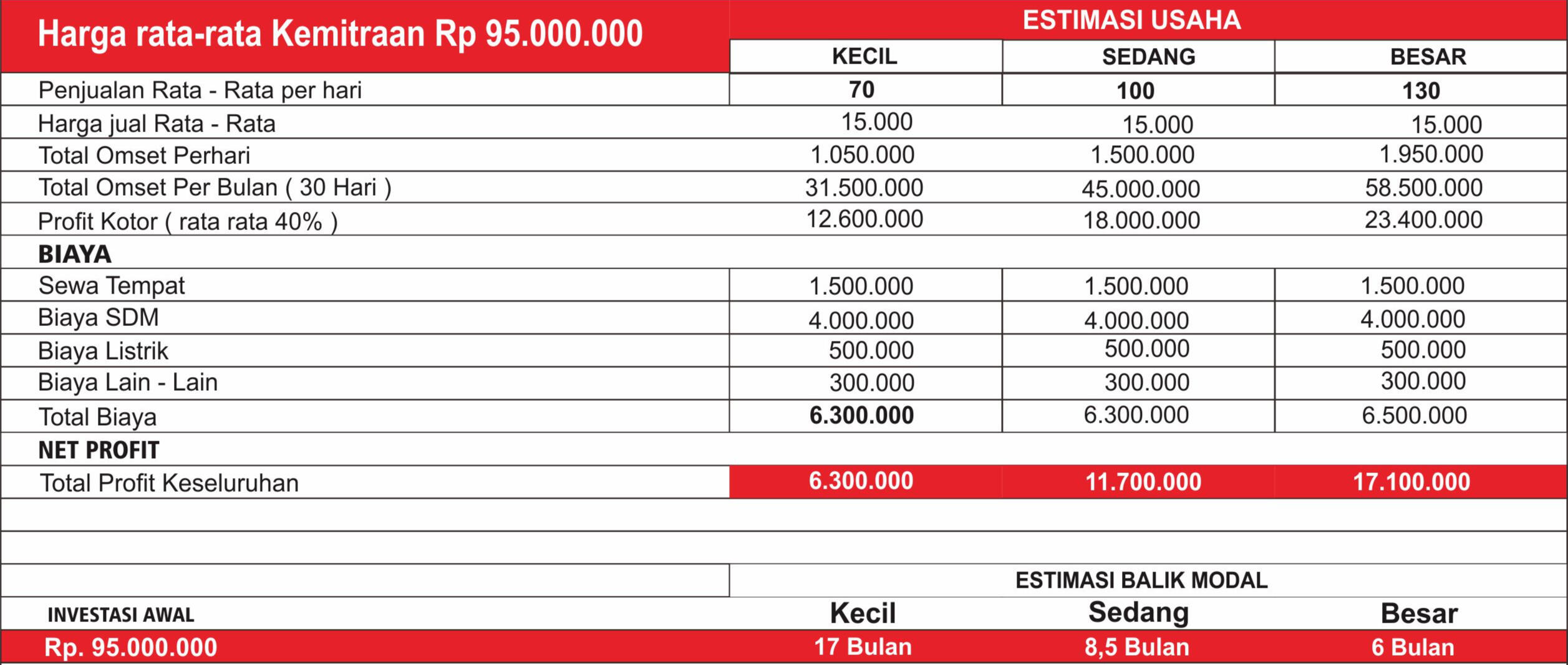 Kami memahami bahwa modal awal bisa menjadi hambatan. Oleh karena itu, kami menawarkan berbagai pilihan paket kemitraan yang sesuai dengan anggaran Anda.